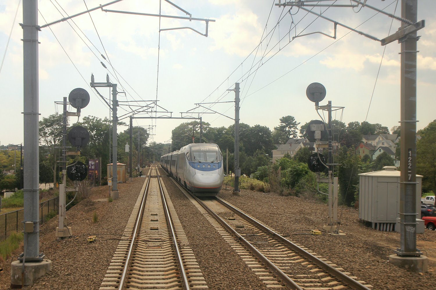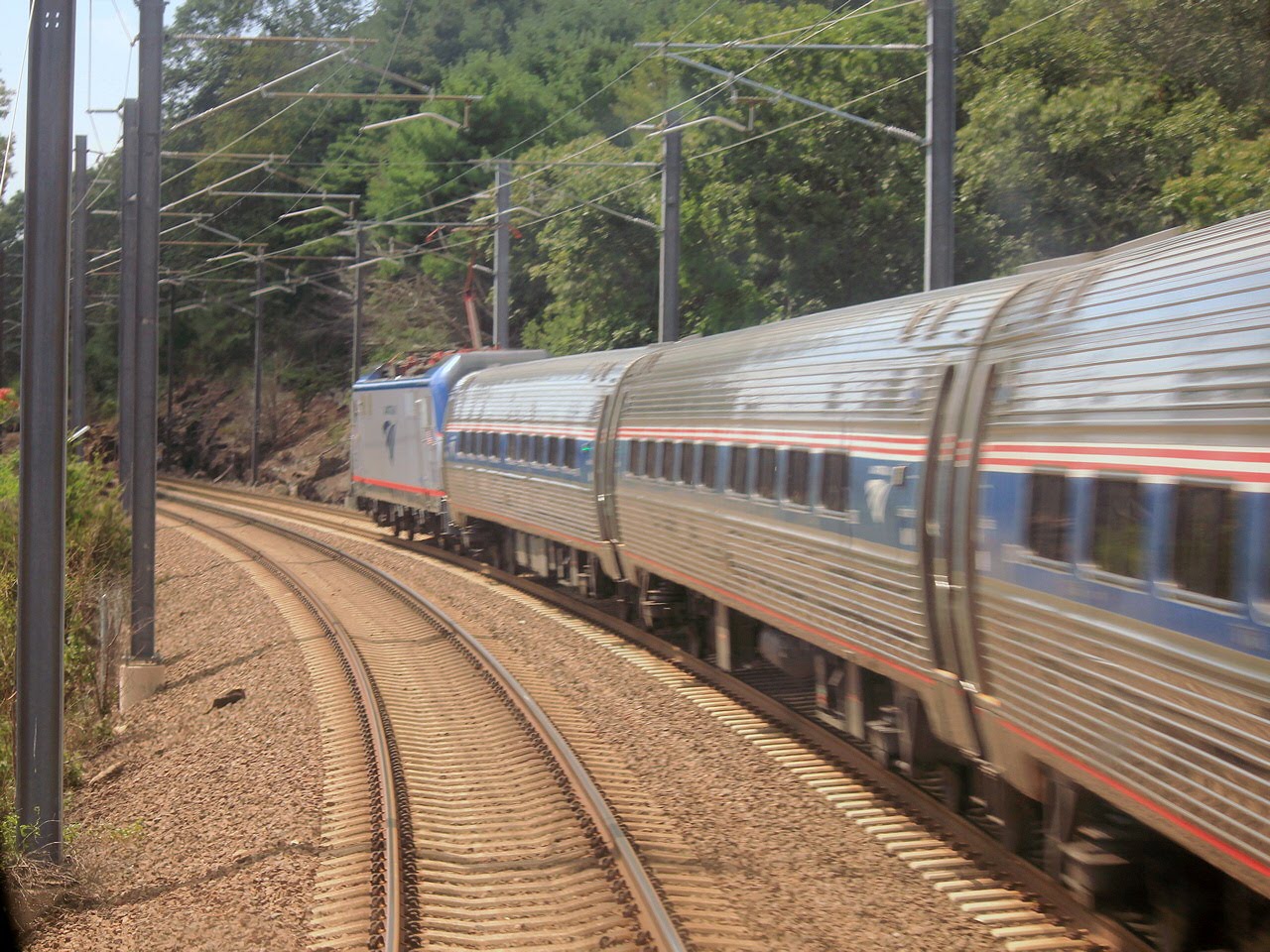 Posted by Jersey Mike on Thu Jul 19 07:50:34 2018 My NEC Survey continues. After a brief video episode on the MNRR New Haven Line, I took down the GoPro and went back to work with my camera to get some good photos of the Amtrak Shore Line. While I have been in a position to take shore line photos before, the speed of the train and poorness of the light combined with my use of a mid-range camera has resulted in rather soft and grainy photos. Well this time around I was able to remedy the situation, at least until my train hit the high speed section in Rhode Island where general fatigue caught up with me and I decided to give up.As is standard practice for my New Hampshire trips I also booked some time at North Station. You can find the complete set of photos here. We begin with this view of the Metro North New Haven Motor Storage with a couple of M2 trainsets still hanging on. ![]() Amtrak ACS-86 #615 was hanging out in the Amtrak engine terminal for one of the few inland route trains that still perform power changes here. ![]() Here we see New Haven RR painted Shore Line East cab car #1709. This was a weekday so SLE was running its normal weekday schedule. ![]() As seen here by an SLE set led by cab car #1710 and powered by an ex-Amtrak P40 making its way through the trench just past the Amtrak division post. ![]() This next series of photos was taken in the complex of tunnels bored through the track rock ridges east of New Haven. Millions of years ago the Connecticut River valley stretching north of New Haven was where the Eurasian and North American plates first attempted to split and form the Atlantic Ocean. The trap rock ridges in the valley are the lava flows from this event. However at some point the permanent break formed to the east leaving a bit of Eurasian geology on the west side of "The Pond" in the process. Due to steam operation at the time of construction, the tunnel complex features a number of smoke shafts that precluded the need for forced ventilation. ![]() ![]() ![]() Here we see the new ADA accessible Branford station with high level platforms and an elevated crossover. Again I would love to know the person who decided that elevators and an overpass were preferable to ramps and on underpass. Overpasses are more only more costly but take longer to navigate. Also, ramps don't break down. ![]() G&W painted P&W C39-8 #3908 leading a freight west at Guilford. This must by a scheduled meet as I seem to get a photo of it every year. ![]() New Guilford again with a damned overpass. Previously SLE stations only featured platforms on one side of the tracks which precluded reverse peak operation. ![]() Westward view of the Amtrak Connecticut River Bridge. This long truss bridge was built with a future expansion to 4 tracks in mind. ![]() Passing a westbound regional in Old Lyme. ![]() Passing a westbound Acela Express with power car #2023 also near Old Lyme. ![]() Someone must by running late as just a few minutes later we passed a second Acela Express trainset at the Shaws Cove Movable Bridge with rear power car #2031. ![]() Classic New Haven interlocking tower SS119 GROTON just east of the Thames River lift bridge. ![]() Amtrak Mystic River Movable Bridge. ![]() Skipping ahead to Boston North Station for my Downeaster connection we find Amtrak P42DC paired with MBTA GP40MC #1124 in the background. ![]() Next to depart was MassDoT painted F40PH-2C #1062 with a camel consist of coaches. ![]() ![]() On the track adjacent to the Downeaster trainset was MBTA F40PH-2C #1070. ![]() It departed with Rotem K-car #1821 on the rear. ![]() Meanwhile, MBTA GP40MC #1124 arrived with a train on one of the low number tracks. ![]() While a new(er) HSP46 #2024 sat a few tracks inbound. Apparently these hybrid GE passenger units are already suffering from major mechanical issues and will need to have their turbos replaces. Seems like MPI should have stayed in their lane with the MP36/MP40 series. ![]() At this point a second Downeaster trainset arrived with Amtrak P42DC #177 in the lead. This set would be for the later of two rush hour departures. ![]() At this point things started to get weird. Amtrak P42DC #133 was taking the place of an NPCU on the Downeaster set and coupled directly behind it was some sort of strange test train with a P42/NPCU combo sandwiching a single Amfleet. ![]() The P42 was #172 and the Downeaster NPCU was #90215. ![]() ![]() Looking back towards the station with Amtrak P42 #172 coupled to #133. ![]() Leaving the strangeness behind, I eventually made my way to Exeter, NH and got this shot of Amtrak P42DC #136 departing the station while another railfan looked on. ![]() Next time I travel to the highest railway station east of the Mississippi. |