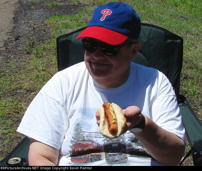 Bill from Fleetwood is the rookie on this trip. He is as old as the passing diner but I think he is doing well with our grueling schedule. BTW it is 3:15 & we gotta ROLL...the Excursion is scheduled to leave the Shops in a half hour: Down I-95 to Newark DE where we find John & Sue Funk hiding from the sun. John retired with 41 years of service in the operating departments of the Reading & later Conrail. Surprised Sue & my wife didn't hit tha casnio like they sometimes do when Funky & I are out on our adventures: At 4:02 the heat waves can't mask that flat face as #942/946 are up around 100MPH for what appears to be their last revenue southboud pass through The First State: ![]() About 20 or so witnessed the Excursion here, some from the 895 bridge & stairs to the platforms. The time is 4:02PM but we ain't done yet: ![]() After dinner at the Deer Park Tavern we check out the CSX Philly Sub which was re-opened Friday after being closed for 3 days due to a derailment outside the Howard St. Tunnel in Baltimore. Eastbound Q300 shows up at 6:30PM: ![]() We try one more shot but we lost the sun so I ain't posting that one. We got back to Blandon about 14 hours after we started. Worth every second :o) |