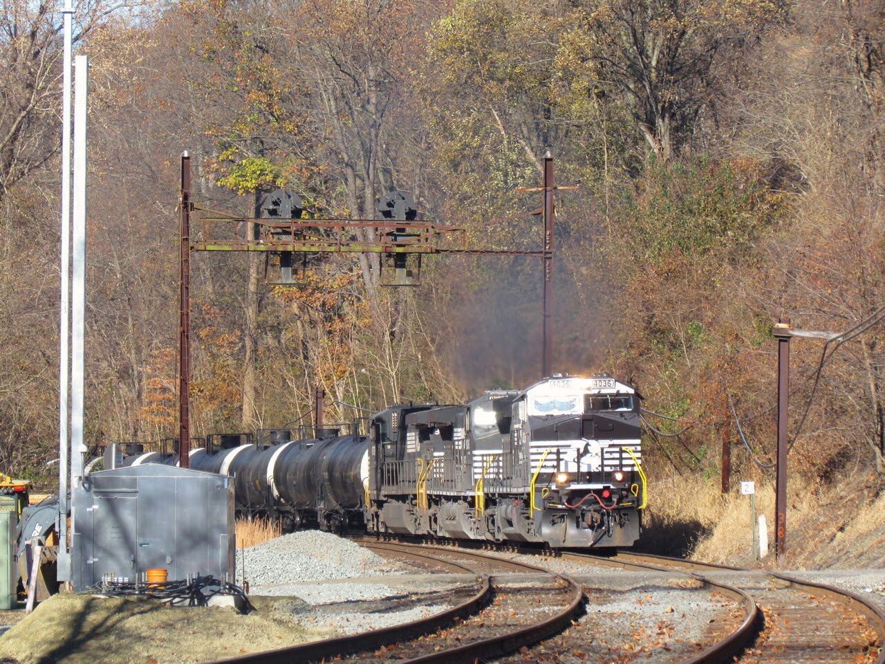 Posted by Jersey Mike on Sat Oct 20 00:39:10 2018 Here we go again with Thanksgiving's Amtrak Sunday, 2017 edition. This year I returned once again to the Martin State Airport station for my NEC Sunday photos, but to mix things up a bit I stopped off at Perryville to and from visiting family for some photos at the MARC station and PERRY interlocking, but also the former CP-MINNICK on the Port Road Branch, which was facing the imminent prospect of a re-signaling. There I was lucky enough to catch a daylight oil train moving north on the corridor towards the oil refineries of Delaware.The Amtrak Sunday photos are the typical affair of extra trains with commuter equipment and a Michael Bay level golden hour. I caught three of the 4 commuter trainsets along with a Regional Extra and a couple of ACELA extras. You can find the complete set of photos here. We begin at CP-MINNICK with an approaching eastbound oil train with new NS AC44C6M #4036, which was rebuilt from a standard cab C40-9. CP-MINNICK once featured a trailing point crossover and a connection into the old Perryville yard, but in the early 90's the yard was pulled out and the interlocking was converted into an automatic signal location. With the re-signaling MINNICK will turn into a controlled point featuring a single cantilever mast with absolute signals in both directions. The reason for the new controlled point, set midway between CP-QUARRY and Amtrak's PERRY interlocking is unknown, but might have something to do with the Rule 562 cab signal operation and needing a wayside signal at that location. ![]() NS 4036 up close and personal as it passes under the westbound PRR Position Light signals at CP-MINNICK with NS C44-9W #9081 trailing in the third position. ![]() ![]() Thanks to the slow speeds involved I was able to race ahead of the train and catch it at the Ostego St crossing in Perryville. A Slow Clear signal was being displayed on the 18L dwarf signal into Amtrak territory. Here we see #4036 and NS C44-9W #9016 at the grade crossing and then entering Amtrak territory. ![]() ![]() At the MARC Perryville Station I found these silly deer waiting for the next train, completely unaware that there is no MARC service to Perryville on weekends. ![]() ![]() The former PRR PERRY tower is still standing, having closed in the late 1980's. ![]() While there I caught Amtrak ACS-86 #639 with a southbound Regional. ![]() Also being eliminated was the old cab signal code change point hardware on the Port Road, which included an old PRR catenary pole complete with a raptor's nest and the CSX Philly Sub bridge over the Susquehanna River in the background. ![]() The MARC Martin State Airport station had been upgraded with a station-trailer in the year since my last visit. ![]() Martin Airport is now the terminus for a number of weekday trains as well as the Saturday weekend service. To this end there is a small storage yard and some sort of shoppe complex. Here we see some trainsets with bi-level K car rolling stock. ![]() Unlike the year before I actually had some company for Amtrak Sunday. ![]() I'll start off with the video compilation of most of the trains that passed by. Image quality isn't as good as the photos, but the photos don't capture the horn salutes ;-) Here we see Southbound Amtrak Holiday Extra #1057 with NJT Arrow III MU #1500 in the head. ![]() North of the station the MP 83.6 signal bridge served to frame southbound trains like Regional #157 seen here. ![]() Here we see a northbound Acela Express with power car #2037 on the rear. ![]() This was followed by southbound Amtrak Acela Express train #2215 with power car #2015 leading. ![]() Southbound Amtrak Regional Train #145 with ACS-86 #635 leading. ![]() The second Holiday Extra was #1054 with ACS-86 #605, 6 MARC single level coaches and MARC cab car #7745. ![]() ![]() This was followed shortly by Southbound Amtrak Holiday Extra Train #1099 with Arrow III MU #1498 leading. ![]() This actually met a northbound Acela Express train with power car #2032 leading. ![]() ![]() We were getting into some pretty serious golden hour by the time Train 99 rolled by with ACS-86 #633 and 9 cars. ![]() Train #92, the northbound Silver Starve, was next to pass with ACS-86 #662 and Viewliner non-diner #61052. ![]() ![]() Southbound Amtrak Acela Express #2217 with power car #2007 passing under the MP 83.6 signal bridge. ![]() Train #2217 backlit as it passes Martin Airport station. ![]() Well this is interesting lighting. Northbound Amtrak Regional Train #132 with ACS-86 #634 and extra Amfleet food service car. ![]() The last "interesting" train of the daylight hours was Northbound Amtrak Regional Extra Train #1134 with ACS-86 #661. ![]() Because it was so damned cold I decided to pack it in as soon as #1134 passed. See you next time as I head out to Chicago for a quick ride on the UP North line. ![]() |